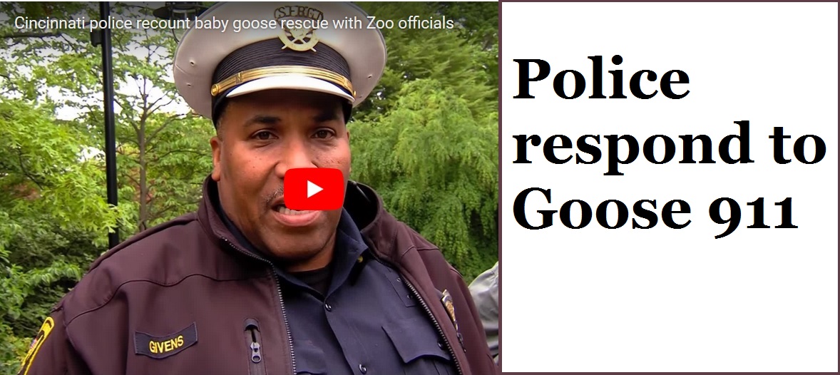 Clever goose mom engages in effective communication to help her baby. Attentive law enforcement responds.