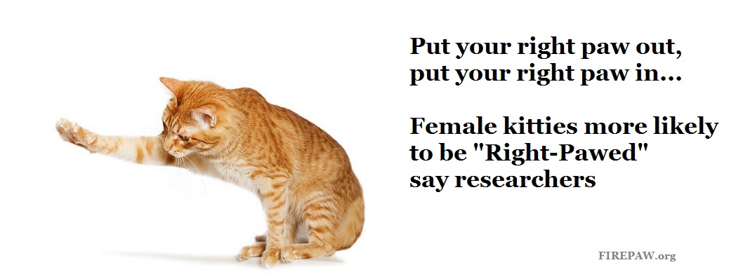 Researchers at Queen’s University Belfast have found that female cats are much more likely to use their right paw than males.