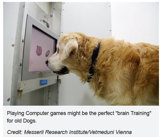 New research has shown that to keep older dogs mentally agile and fit, look to teaching them computer games. (“Using simple tasks that can be solved through touchscreen interaction, followed by a reward, even old dogs remain willing to learn.” ) In the study, the older dogs, like younger humans, really took to the computers and actually became avid gamers. We can just see the national contests and television specials now. Researchers are currently working to make these dog-friendly computer games available for consumers for home use.