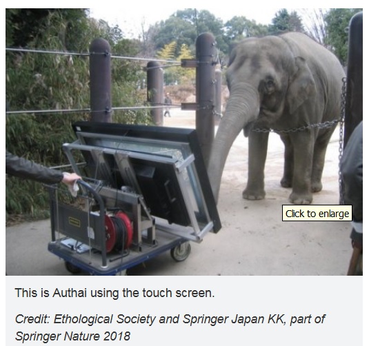 Irie and her colleagues developed a new method to test how well the animals can judge relative quantity. They successfully trained a 14-year old Asian elephant called Authai from the Ueno Zoo in Japan to use a computer-controlled touch panel. The programme was specifically designed to examine the cognition of elephants, so that any unintended factors potentially influencing the results could be ruled out.