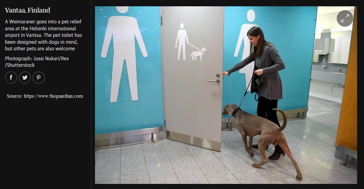 Pet-Friendly Bathroom at Airport FIREPAWJanuary 21, 2020January 21, 2020Animal Health and Well-Being, Animal-Human Connections, Animals and Airlines, Pet-Friendly Post navigation PreviousNext Progress in Finland. Step up, U.S. Share this: Click to share on X (Opens in new window) X Click to share on Facebook (Opens in new window) Facebook Like Loading...
