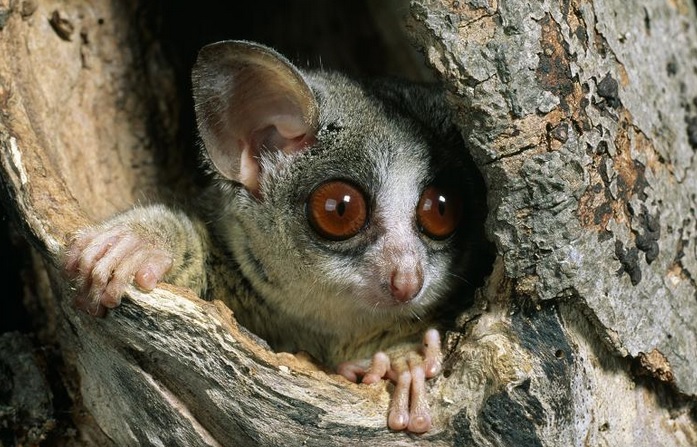 Bushbabies, or southern lesser galagos (Galago moholi), a species of primate that lives in southern Africa and are cousins to lemurs, boast big, round eyes and are so small they can fit in your hand. They are nocturnal and live high in the branches of acacia trees. But you may still hear their eerie calls at night (they sound like a baby crying, which is how they got their nickname) in the savannas and forests of South Africa, Botswana, Zimbabwe and other neighboring nations. They are cute as a button and some people keep them as pets, which has put these little creatures at risk from the underground pet trade industry.