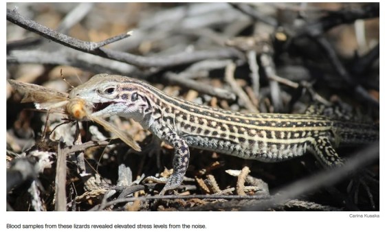 Lizards exposed to noise pollution from low-flying fighter jets have resorted to stress-eating.