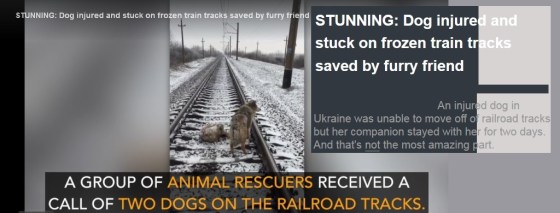 animal companion story, dog companion story, dog save his companion on railroad track, Injured dog stuck to railroad tracks saved by companion, Stunning injured dog story, video of injured dog stuck to frozen railroad tracks