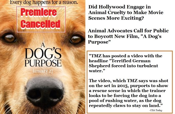 A Dogs Purpose movie boycott, alleged animal cruelty on hollywood movie set, animal abuse alleged on movie set, animal cruelty in hollywood, animal rights advocates call for public to boycott A Dogs Purpose film, Movie studio cancels premiere of A Dogs Purpose, TMZ footage of animal cruelty on set of A Dogs Purpose